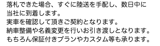 当社は自社工場完備で、落札後のメンテナンス・車検・自動車保険など、
